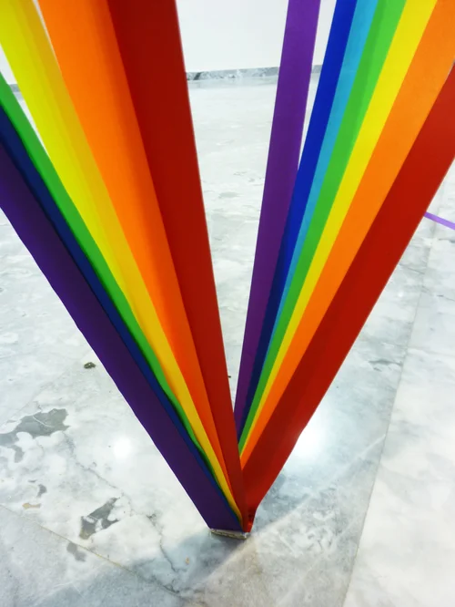My Senior project's focus was based on the premise that visual complexity is a significant aesthetic element in the creation and perception of art and design. I addressed the question: What is the relationship between visual complexity and aesthetic value? I attempted to answer it by using what the Artists call "the predictive coding model" which is increasingly and fruitfully used to explain a wide range of findings in perception. Using the concept of prediction error from the predictive coding approach, I attempted to explore the basics of visual processing and connect it with the principles of "information theory"and cognitive neuroscience. In this project I tried to prove that it is right to be wrong independently if there is or not "freedom of choice". I argue that a true artist will use the "wrong choices" as a way to increase unpredictability. I used as an example the way the light behaves in nature meaning that it follows the shortest, thus straight, path going from point A to point B. Yet it seems, "all Roads Lead to Rome". Could it be that deviations from the shortest path which by itself is beautiful are "wrong decisions or mistakes?"It is those other choices I put the emphasis on and thus I have created geometrical shapes that create zig zag deviations because in this way I show that even if choose the "wrong path " at the end you will reach your goal, so it is right to be wrong. The viewer is also challenged by a series of "purposely made mistakes". The colorful ribbons make every choice have another "taste". I chose the seven colors of the rainbow as they are the product of visible white light passing through a prism thus increasing the possible options a viewer chooses to follow and thus end up with different paths or engage in cross-over regions or turning points the same way we choose paths in life. It was interesting to see if my viewers would "spot" the wrong choices and whether they would succeed in recovering the predictable pattern moving from a state of uncertainty to a state of increased predictability. Where is the golden ratio? Is it this balance that artists discover and create pieces of work that seem to violate aesthetics and artistic laws and yet end up having important artworks?