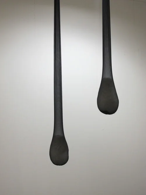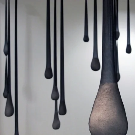 Salt is the protagonist in my installation because as I concluded from my research it is an element with 14,000 uses in life.Even today, the history of salt touches our daily lives. The word "salary" was derived from the word "salt" because Roman legionnaires were paid in salt, "salarium" the Latin origin of the word. It served as currency at various times and places,and it has been the cause of bitter warfare. As an example, the salt tax was a significant cause of the French Revolution. In 1893 after the bankruptcy of Greece the loans were paid by the tax of the salt. Salt is the main ingredient of the human tears with water being absent as reflected by our present state of mind and exists even in our execution of in our feelings, in our teardrops. So I decided to create black teardrops made by black stockings that have inside salt not only because our teardrops are salty but also because of the psychological situation of the Greek people that I receive when I walk in the city, from the news, even sometimes from my colleagues.I chose black stockings because the tears are not tears of happiness, but of sadness. In my project I wanted to show the negative aspect of tears.I used stockings for practical reasons,because of their elasticity but also they are a material that mainly women use and it was familiar to me. This made me think of how something that we use to enhance our beauty, clothing, or dancing can be transformed to something that shows sadness. I chose to remove the water element from the teardrops as it is obvious many tears have dried out from many Greeks today as they find themselves trapped in despair and anxiety. Apart from the common stress, the Greek economic crisis is confronted with the most prevalent mental disorder in decades, depression. Fear and uncertainty about tomorrow are major health indicators of most Greeks and disease challenges women twice as often as men. Mrs. Daphne Kalogeropoulou a psychologist has shared some important findings with me. She informed me that in 2009 there was an average of 1 suicide per day in Greece while in 2010 there were 2. As a result we have 1,730 suicides in the last two years. While attempts are 3 times more common in women,men attain death 3 times higher.Obviously suicide attempts are more accepted as a reaction of protest to the female gender in our society. Additional research conducted by the Society of Social Psychiatry and Mental Health reveals that 7 out of 10 Greeks are on the brink of depression due to the economic crisis. This project is also a social based work meaning that I was inspired from my social environment and what I feel is the present state of mind of the citizens of my city. This is the reason that I decided to install it to the central square of Ag.Paraskevi. The work as an installation within its context that I decided to place it in this case in the central square of Ag.Paraskevi it was really different from what I expected. Meaning that the people and especially the kids gave me different interpretations of what I had thought about this project because they played with the tears but in some cases the tears became a "weapon" by pushing the tears violently. In addition, I installed it at Varvakios Agora in front of a butcher shop. The momentary occupation of the stand by an aesthetic presence confuses the usual operation of the butcher shop-but also of the artwork. Removed from the sterile environment of the art world, the art work's function and value is called into question. As aesthetic beings, the module may also draw attention to the aesthetic qualities of the meat and architecture. Equally, their occupation of a consumer display space presents them as products-cultural produce? The activity generated here is a consumer benchmark and, as, such an indicator of the economic whole. Here the installation appears perhaps as if certain sadness has crystallized upon the facade of the butcher shop. The curator of the exhibition at Varvakios Agora was Danae Filioti. The answer to all these sad outcomes maybe what Nietzsche said "What doesn't kill you only makes you stronger." The economic crisis can be an opportunity to become stronger. But to do this we must first be alive. What I wish the most, is that these tears will stop being dry and that water will come back to them to wash away all our tears and sadness.